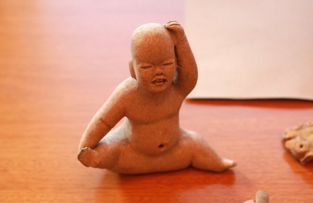 *** Entre las más antiguas se encuentra una figurilla de cerámica olmeca, de las denominadas “baby face”, así como otra figura antropomorfa de la tradición Tumbas de Tiro