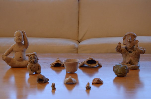 Del conjunto sobresale una vasija teotihuacana y una pieza de piedra metamórfica de la tradición Mezcala, proveniente de la región de Guerrero; asimismo destaca una figurilla muestra del arte cerámico de la cultura Remojadas, propia de lo que hoy es el estado de Veracruz, anotó el experto.