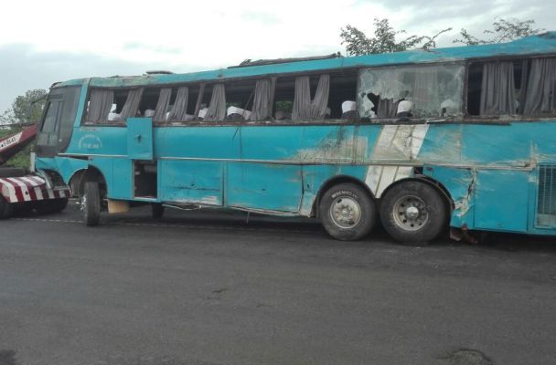 Acayucan.- El Instituto Nacional de Migración (INM) informa que en la carretera 166 entronque La Tinaja-Cosoleacaque, en el estado de Veracruz, un autobús de pasajeros, en el que viajaban 43 extranjeros de nacionalidad haitiana y brasileña; así como seis mexicanos, se volcó debido al exceso de velocidad en el que era conducido, lo que provocó la muerte de un menor de 11 meses, además de lesiones a los pasajeros.