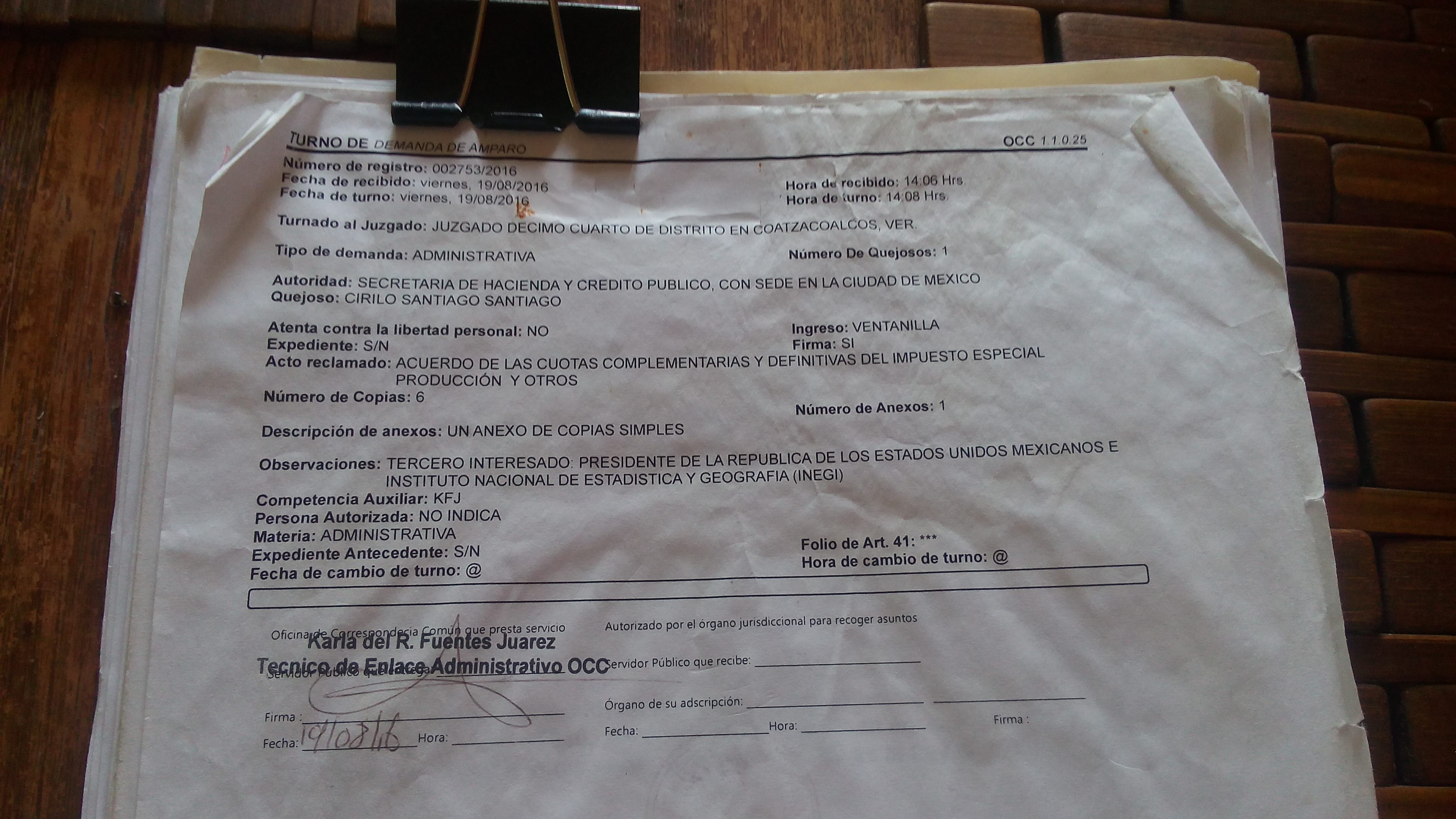 Se trata del primer juicio de amparo indirecto en el sur veracruzano, el número 928/2016 que se desahoga en el juzgado décimo cuarto de distrito y es contra incremento que data desde agosto del 2016.