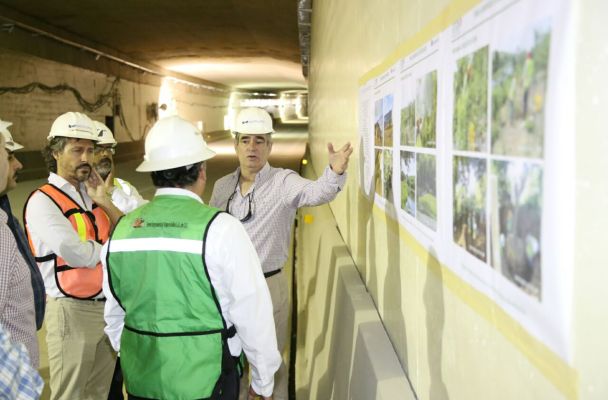 Tras su recorrido, expuso existe un gran progreso respecto a la instalación eléctrica para luminarias de las paredes del Túnel y la próxima semana iniciará la construcción de la Plaza de Cobro.