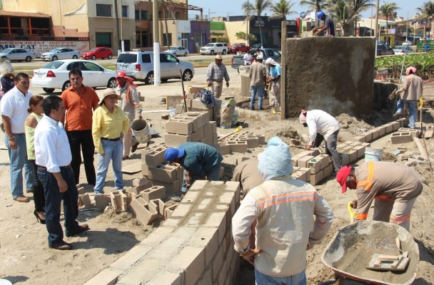 Coatzacoalcos, Ver.- El alcalde, Joaquín Caballero Rosiñol, y la presidenta del DIF Municipal, Cristina Cházaro de Caballero, supervisaron la mañana de este miércoles la construcción de la Plaza a la Mujer, que se edifica en el Malecón Costero de la ciudad a la altura de la Casa de la Cultura, obra que lleva un avance de un 65 por ciento.