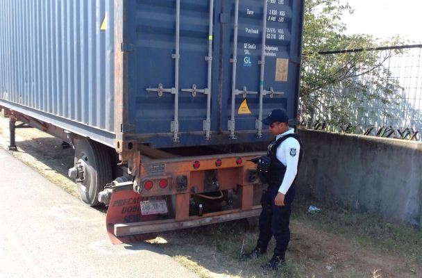 Cosoleacaque, Ver.- Resultado de una denuncia ciudadana realizada al número único de emergencias 9-1-1, elementos de la Secretaría de Seguridad Pública (SSP), adscritos a la Policía Vial, lograron recuperar un remolque tipo caja seca con reporte de robo.