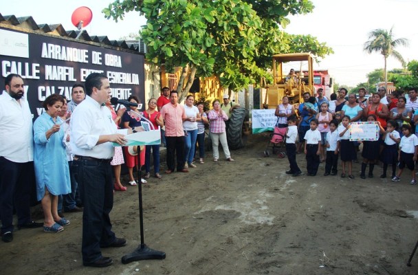 Coatzacoalcos, Ver., 5 de junio de 2017.- Este lunes por la tarde se dio el banderazo de arranque a la pavimentación con concreto hidráulico de la calle Marfil de la colonia Elvira Ochoa, la cual se ubica entre las calles Esmeralda y Calzada del Puente y que interconectará a las colonias Tierra Nueva y Villas de la Ribera beneficiándose a 2 mil 500 habitantes del sector.