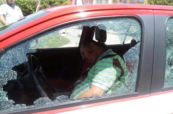 Mientras el chofer de la unidad quedaba inerte en el asiento con el motor en marcha.