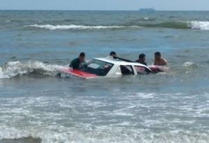 El taxi estaba dentro del mar; flotando.