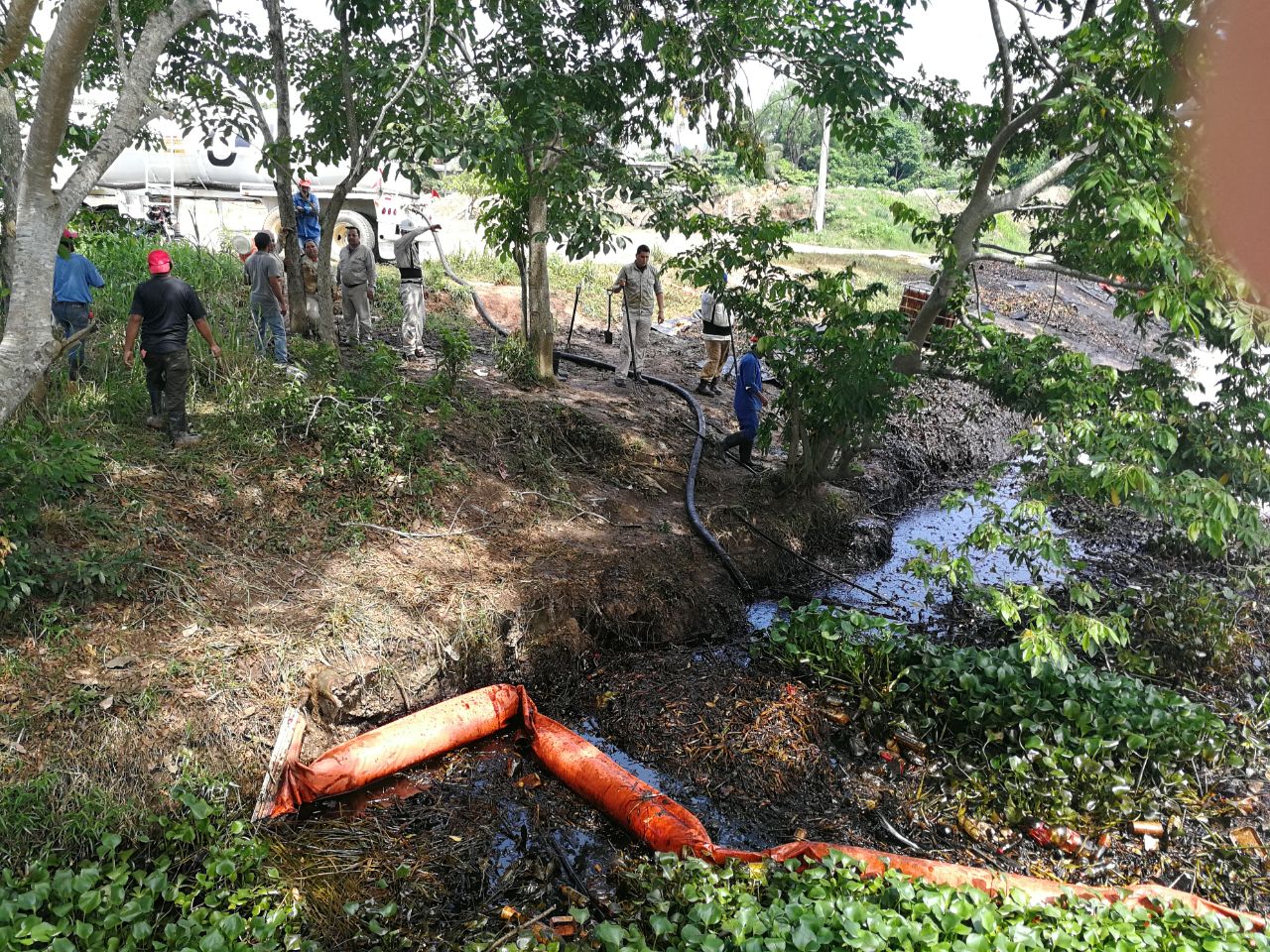Debido a las intensas lluvias la mancha de hidrocarburo cruzó el arroyo El Control hasta el río Tancochapa.