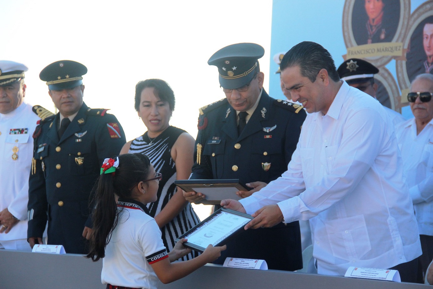 El Comandante de la Vigésima Novena Zona Militar, Cruz Eduardo Vega Rivera, efectuó el pase de la lista de honor en memoria de los héroes nacionales: Juan de la Barrera, Francisco Márquez, Agustín Melgar, Juan Escutia, Vicente Suárez y Fernando Montes de Oca.
