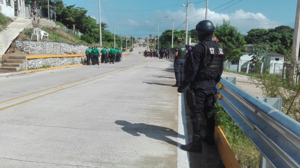Coatzacoalcos, Ver.- Esta mañana, el grupo antimotines de la Secretaría de Seguridad Pública desalojó a un grupo de manifestantes de Villa Allende que bloquearon el acceso al Túnel Sumergido en reclamo que la aseguradora de dicha obra les pague las afectaciones a sus viviendas por el proceso de construcción.
