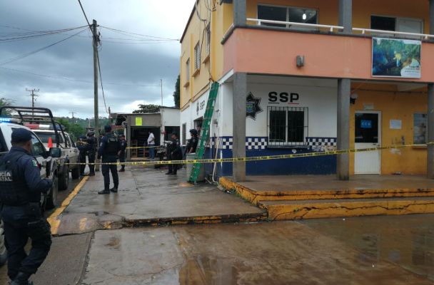 Esta mañana, la Fuerza Civil y SSP llegaron a tomar el mando de la Policía Municipal de Tatahuicapan cuya base fue acordonada por comisión del delito.