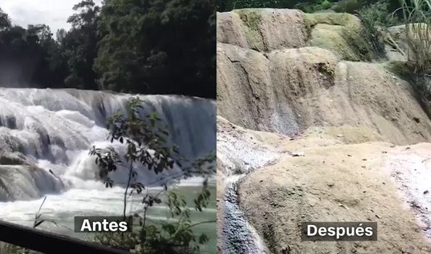 En los primeros días del mes de noviembre, las Cascadas presentaron una disminución de caudal que fue observada y reportada por los ejidatarios beneficiarios del parque. Esta situación aumentó a partir del jueves 9 de noviembre, cuando el nivel del agua en el brazo derecho del río descendió aproximadamente un metro y, por consecuencia, redujo más el caudal en las Cascadas.