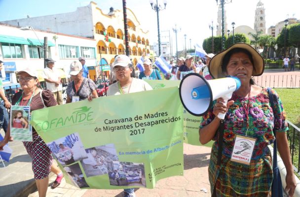 La XIII Caravana de Madres Centroamericanas llegó al municipio de Acayucan, encabezada por Martha Sánchez Soler, coordinadora del Movimiento Migrante Mesoamericano (MMM).