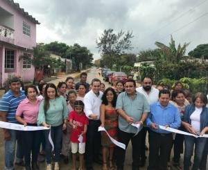 Coatzacoalcos, Ver., 28 de diciembre 2017.- A tres días de entregar la administración Municipal, el Alcalde, Joaquín Caballero Rosiñol, inauguró 2 kilómetros de pavimentación con concreto hidráulico en las colonias Lomas de Barrillas y Solidaridad, donde se invirtieron más de 11 millones de pesos provenientes del Fondo de Infraestructura Social Municipal (Fism).