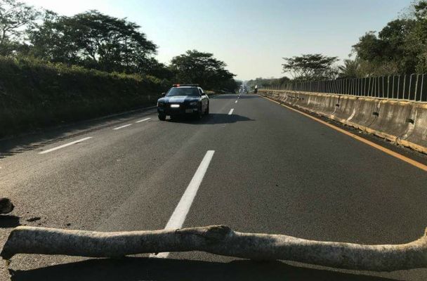 Lo anterior se registró minutos después de que usuarios de la carretera de cuota informaran sobre la presencia de hombres armados y encapuchados quienes habían colocado troncos sobre la autopista, a fin de obligar a los automovilistas a detener su marcha y consumar el asalto.