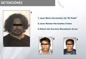 “Un golpe muy relevante es la detención del delincuente Juan Ramón Hernández, conocido como El Pinky y dos personas más de su banda entre ellos, Edwin del Carmen Macedonio, en la zona sur, eran sicarios, están vinculados al homicidio de nueve personas” dijo.