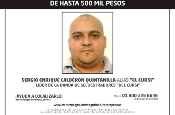 “El jefe de la banda logró escapar, es Sergio Enrique Calderón, ‘El Cursi’. El Grupo de Coordinación Veracruz ha acordado hoy ofrecer hasta 500 mil pesos de recompensa a quien ofrezca datos que nos permitan detenerlo”, dijo Yunes Linares durante conferencia este domingo, en el municipio de Orizaba.
