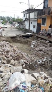 En la Colonia Benito Juárez de Coatzacoalcos se registró un severo socavón en la calle debido a un deslave por fuga de agua de drenaje en el sistema de red de la Comisión Municipal de Agua y Saneamiento.