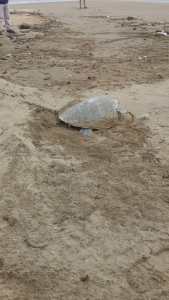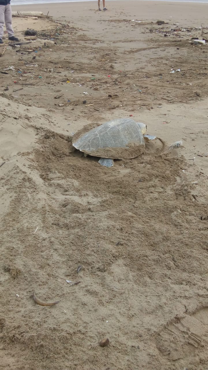 Otra tortuga marina desova en playas de Coatzacoalcos