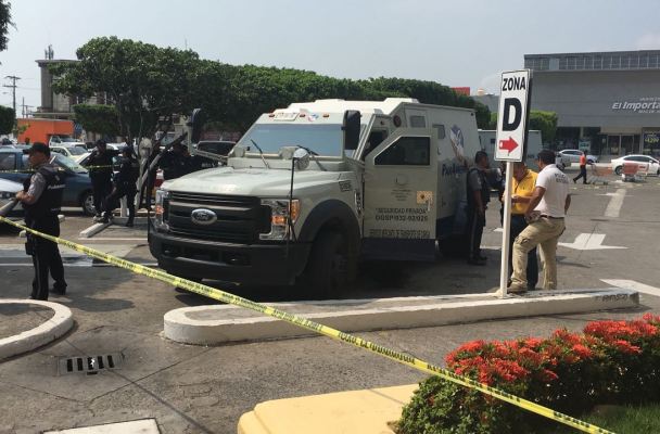 Sujetos desconocidos asaltaron ayer una unidad del Servicio Panamericano de Protección SA de CV en el estacionamiento de la plaza Crystal de la ciudad de Veracruz en la mañana del domingo.