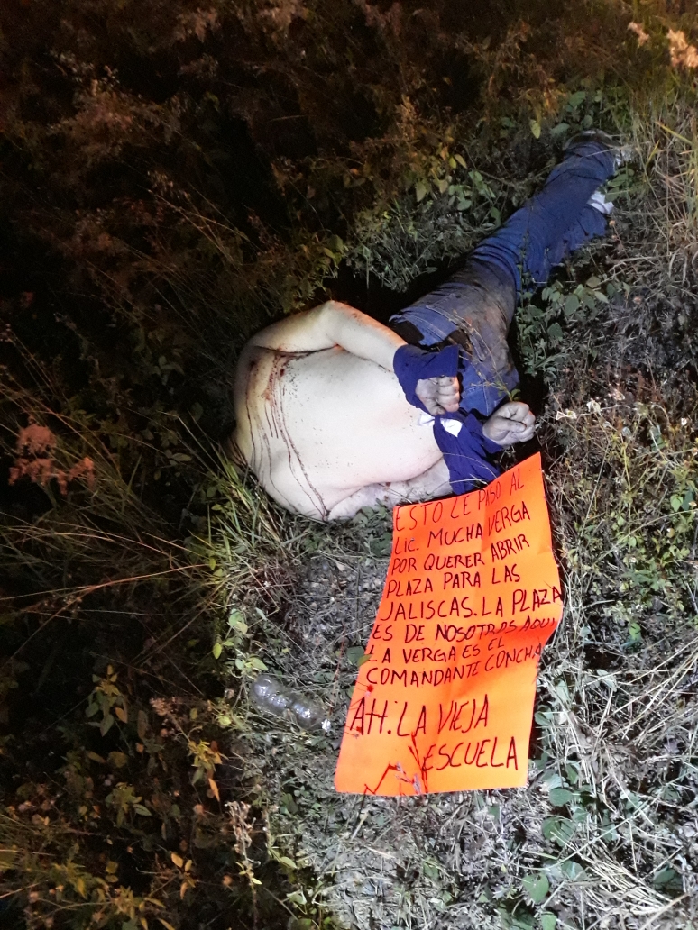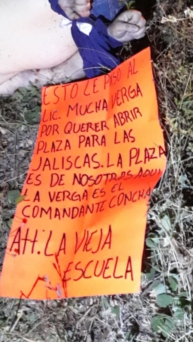 Junto al cuerpo de este mando de la Policía Federal, los sicarios e integrantes del crimen organizado dejaron un narcomensaje firmado por “La Vieja Escuela”.