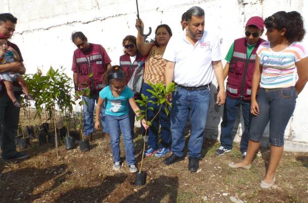 *Padres de familia y niños se sumaron a la campaña de reforestación.