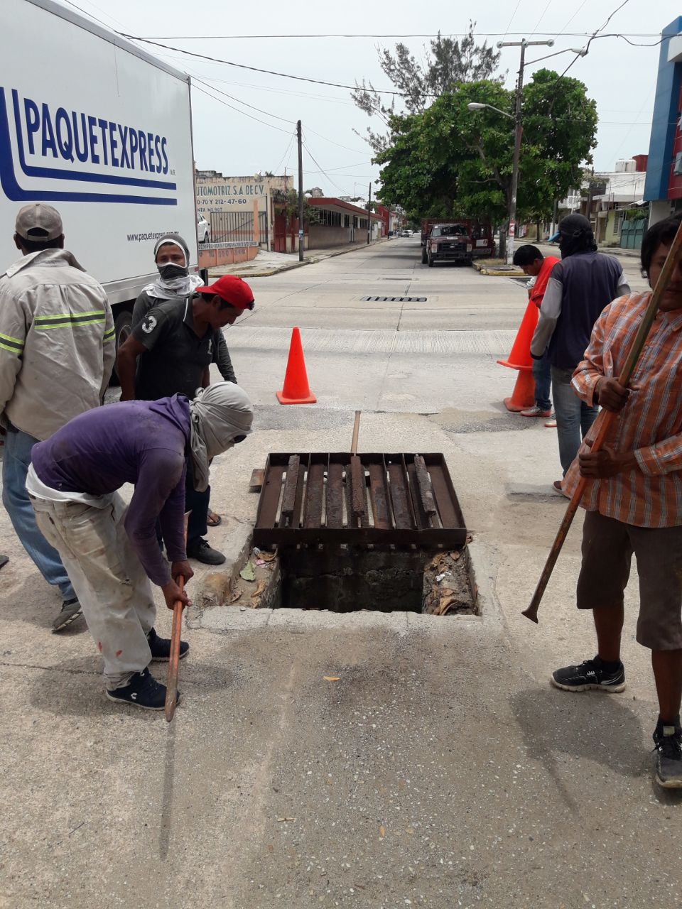 Estos trabajos iniciaron con el saneamiento del colector pluvial ubicado en la Cuenca, situada en la esquina de Madero y Carranza en el centro de este puerto.