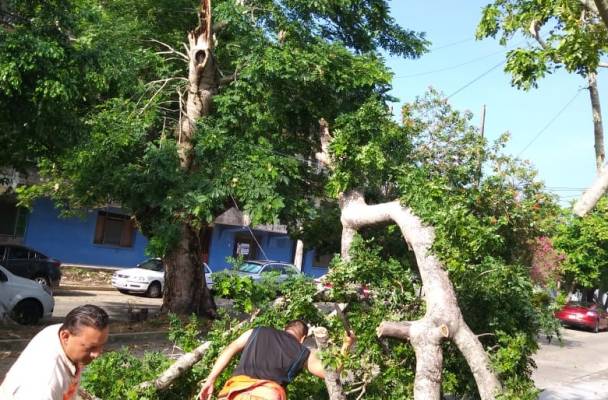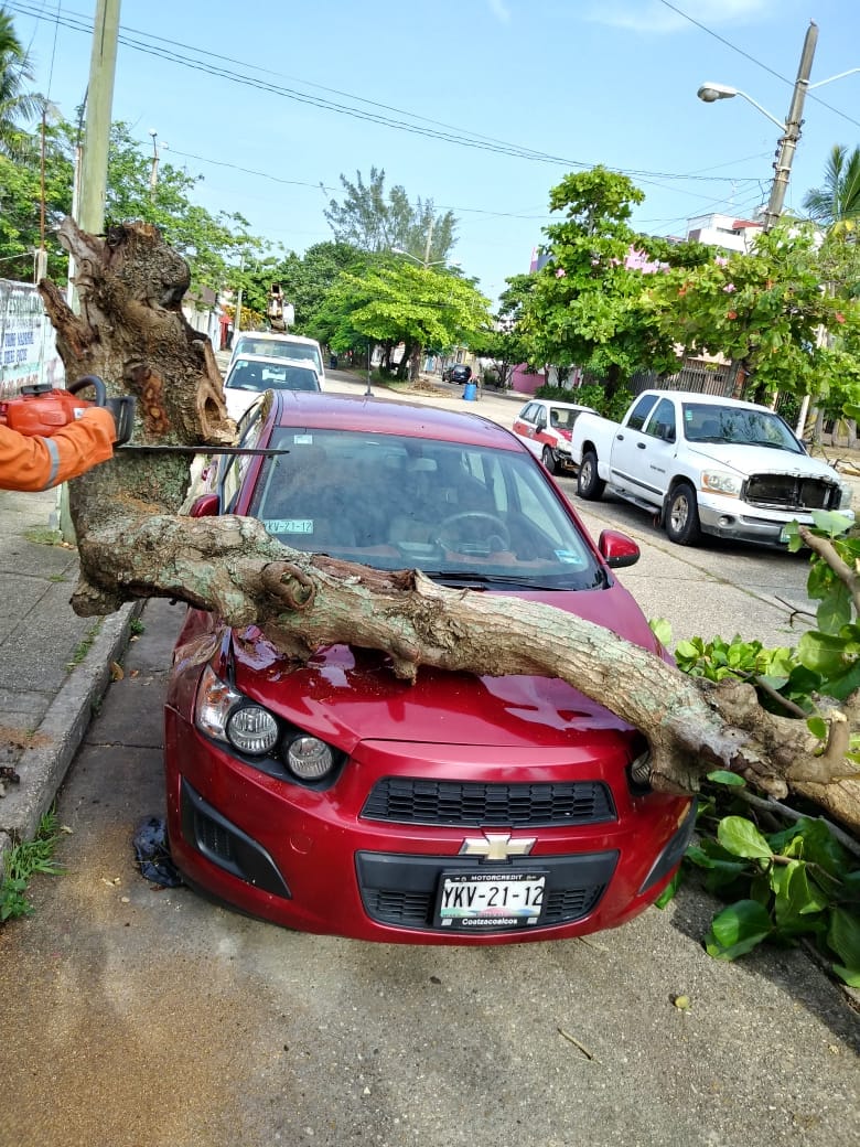 La lluvia de las ultimas horas provocó la caída de árboles en el puerto de Coatzacoalcos.