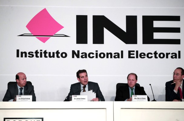 El presidente del Instituto Nacional Electoral, Lorenzo Córdova, acompañado de los consejeros Enrique Andrade, Marco A. Baños y Ciro Murayama, durante conferencia de prensa sobre la jornada electoral
