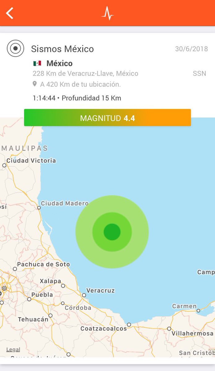 «SISMO Magnitud 4.4 Loc 235 km al NORESTE de GUTIERREZ ZAMORA, VER 30/06/18 01:14:44 Lat 21.42 Lon -95.07 Pf 15 km», anotó el Sismológico Nacional en su cuenta de Twitter @SSNMexico.