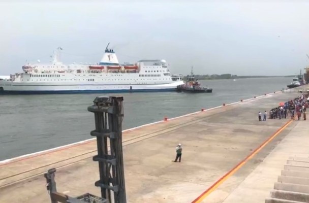 Adiós al barco Logos Hope, zarpa desde el Puerto de Coatzacoalcos