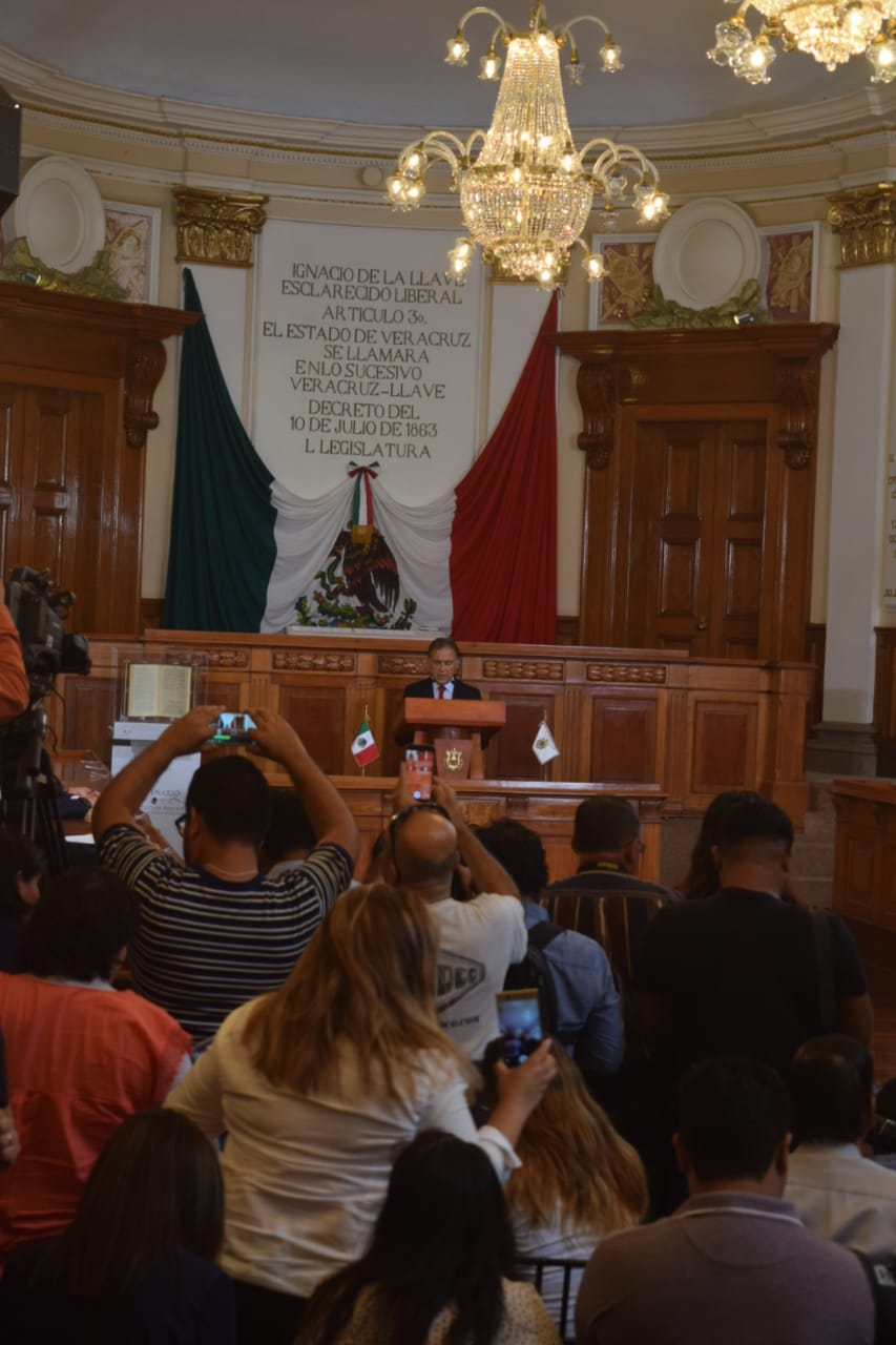Su mensaje lo dirigió a en la sala Venustiano Carranza, en el Palacio de Gobierno con sede en la ciudad de Xalapa, donde estuvo acompañado de su gabinete.