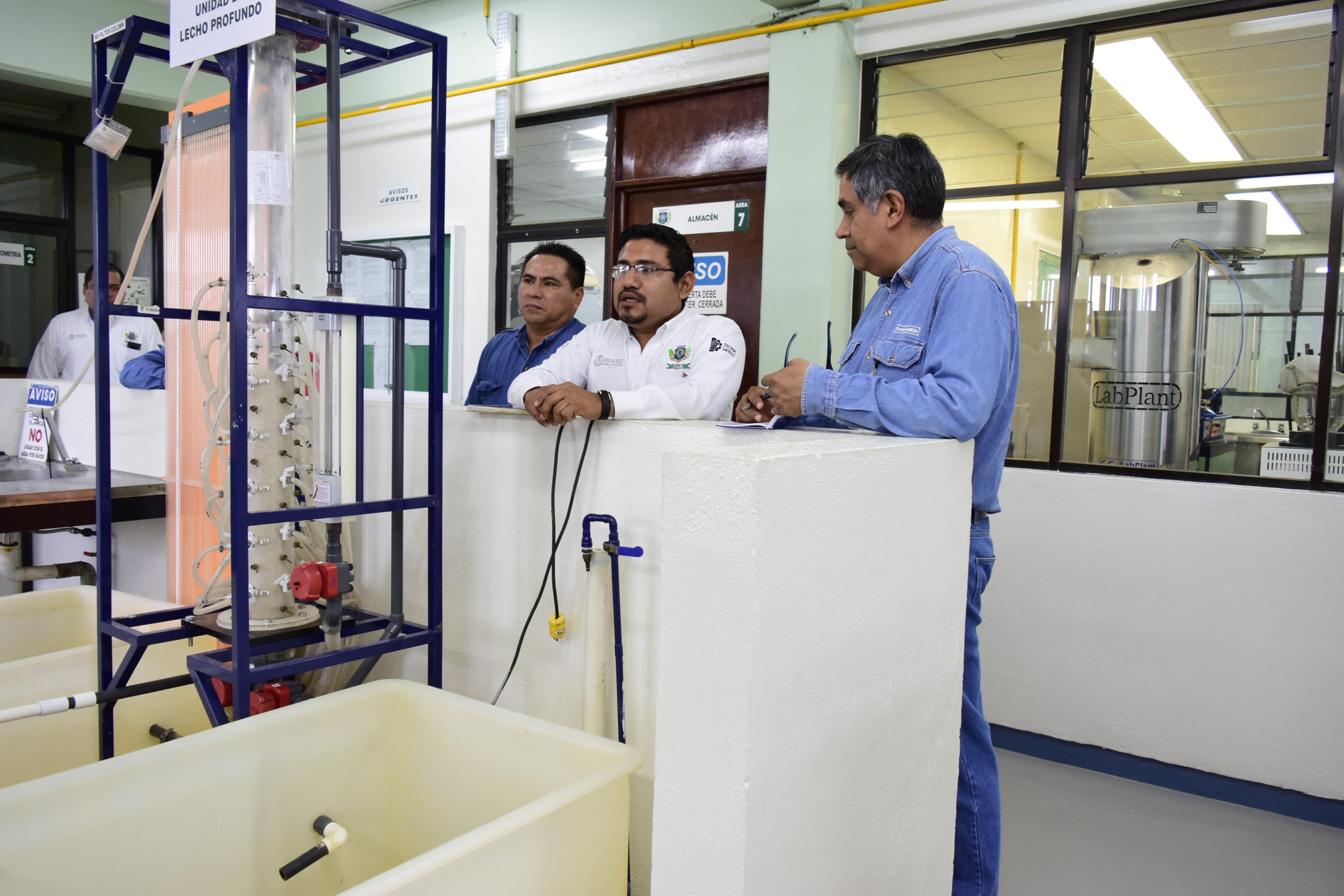 Después de la junta, personal de Braskem-Idesa recorrió las instalaciones del laboratorio químico acompañados de docentes del Itesco, quienes les impartieron un resumen de los trabajos que los jóvenes realizan en ese lugar, así como el avanzado equipo con el que cuenta la institución.