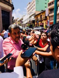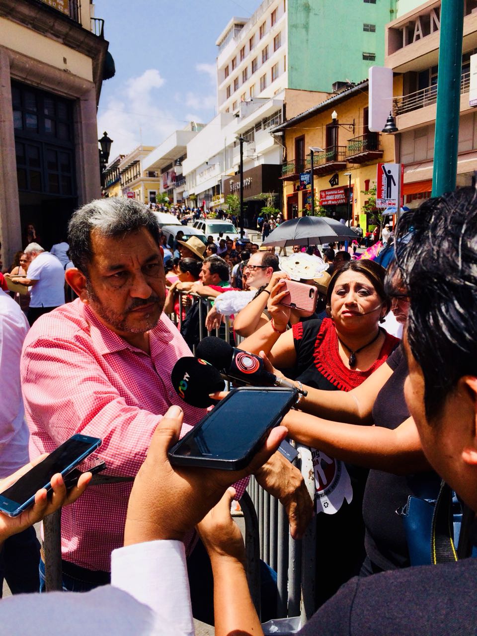 El diputado electo de Coatzacoalcos y actual coordinador de los diputados de Morena en el Congreso del Estado, Amado Cruz Malpica acompañó al gobernador electo de Veracruz, Cuitláhuac García Jiménez en su primer mensaje oficial emitido la Plaza Lerdo de la capital del estado.