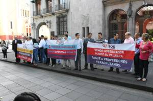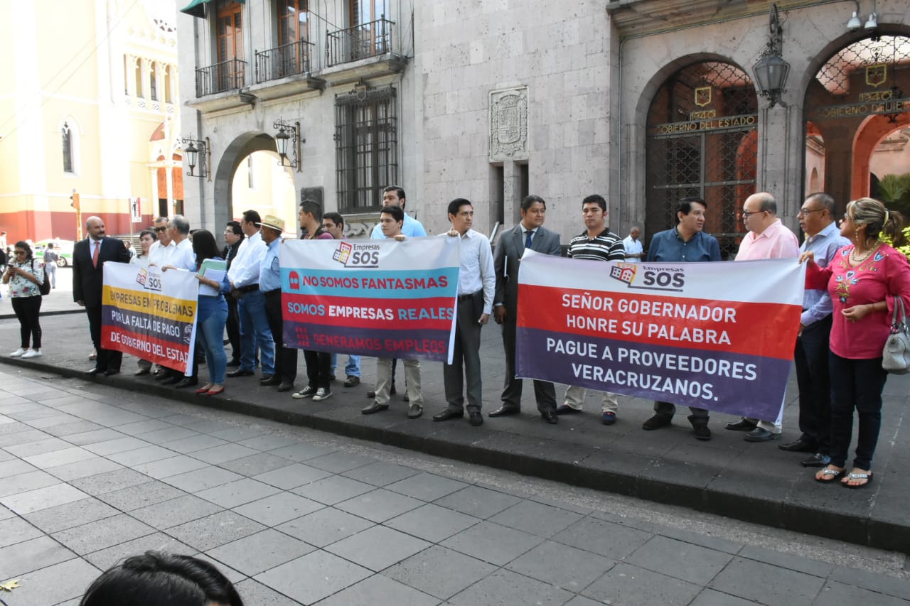 “Empresas SOS. Señor Gobernador honre su palabra. Pague a los proveedores veracruzanos”. “No somos fantasmas, somos empresas reales, generamos empleos”, “empresas en problemas por la falta de pago del Gobierno del Estado”.