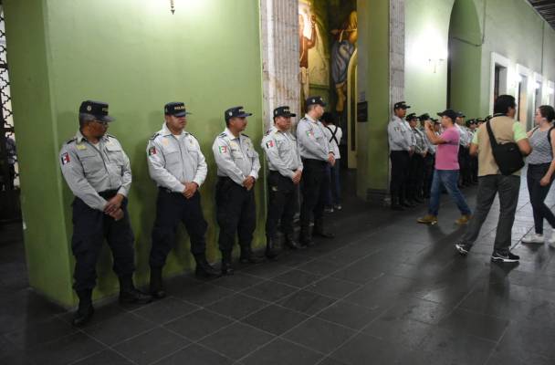 El Palacio de Gobierno del Estado de Veracruz, fue rodeado por elementos de seguridad, momentos desde que se inició con las advertencias para que los empresarios abandonaran el lugar.