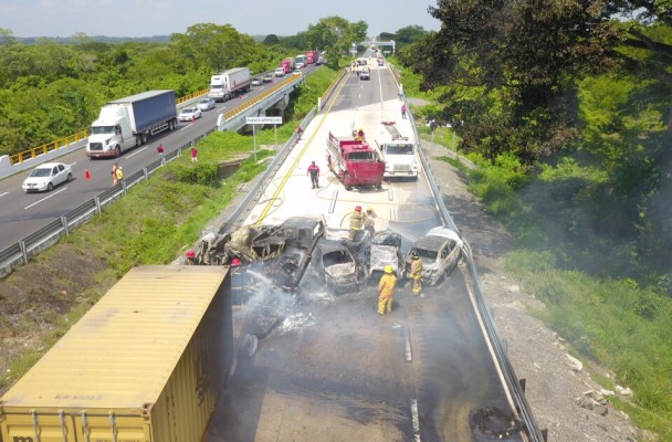 Fue así que una chispa alcanzó el material flamable y este explotó formando una bola de fuego, alcanzando a los vehículos que quedaron atrapados entre la carambola y con ellos a varios de sus ocupantes.