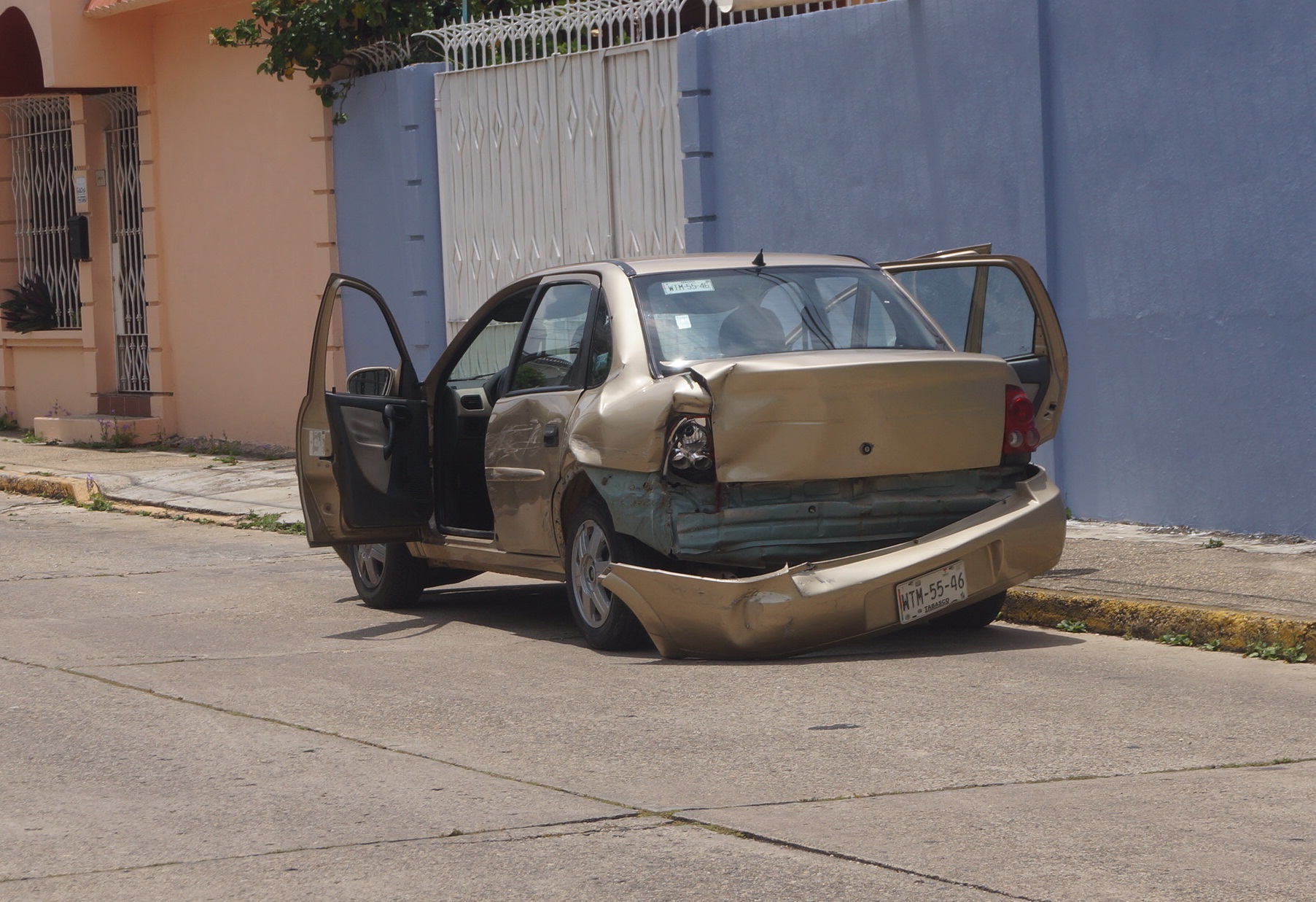 Por esta causa el auto con placas WTM-55-46 del estado de Tabasco, fue abandonado en la calle Independencia, de la colonia Ruiz Cortines, detrás de conocido colegio particular.
