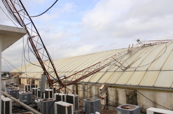 Cae torre de radiocomunicación sobre el domo del Palacio Municipal