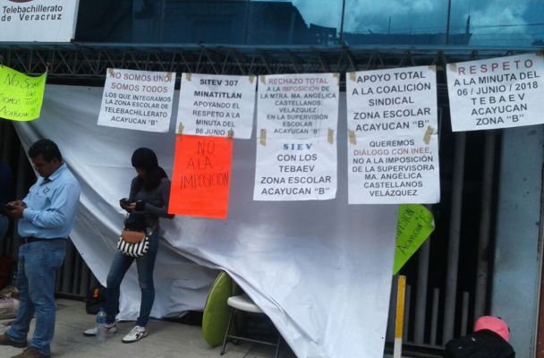 Profesores del Telebachillerato de la zona del municipio de Acayucan, tomaron las oficinas del Tebaev porque están inconformes en contra de la supuesta imposición del Oficial Mayor de la Secretaría de Educación de Veracruz (SEV), Abel Cuevas Melo.