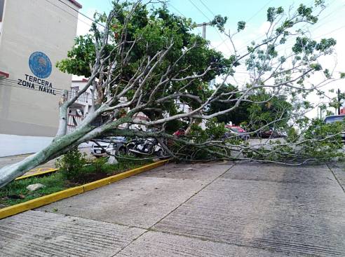 Intensa lluvia desplomó 2 árboles en Coatzacoalcos
