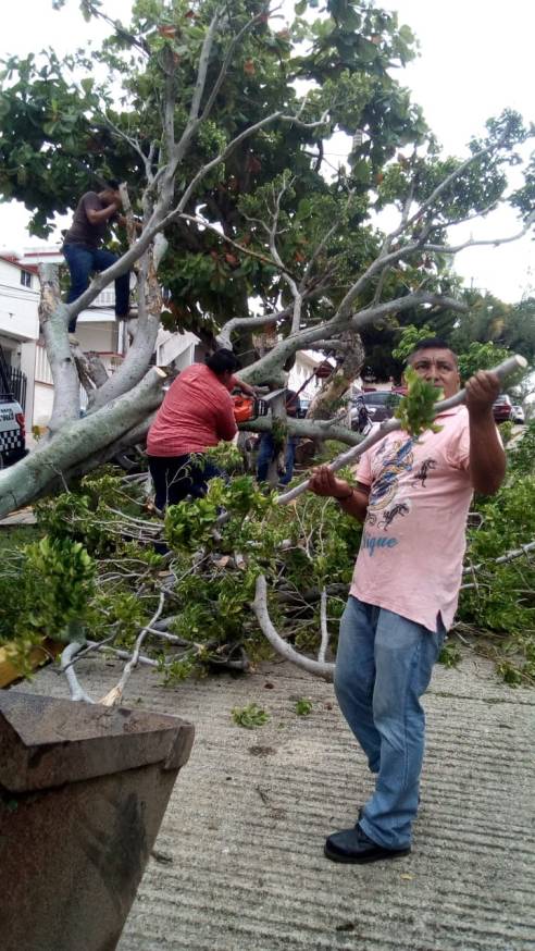 Intensa lluvia desplomó 2 árboles en Coatzacoalcos