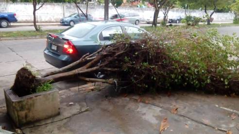 Intensa lluvia desplomó 2 árboles en Coatzacoalcos