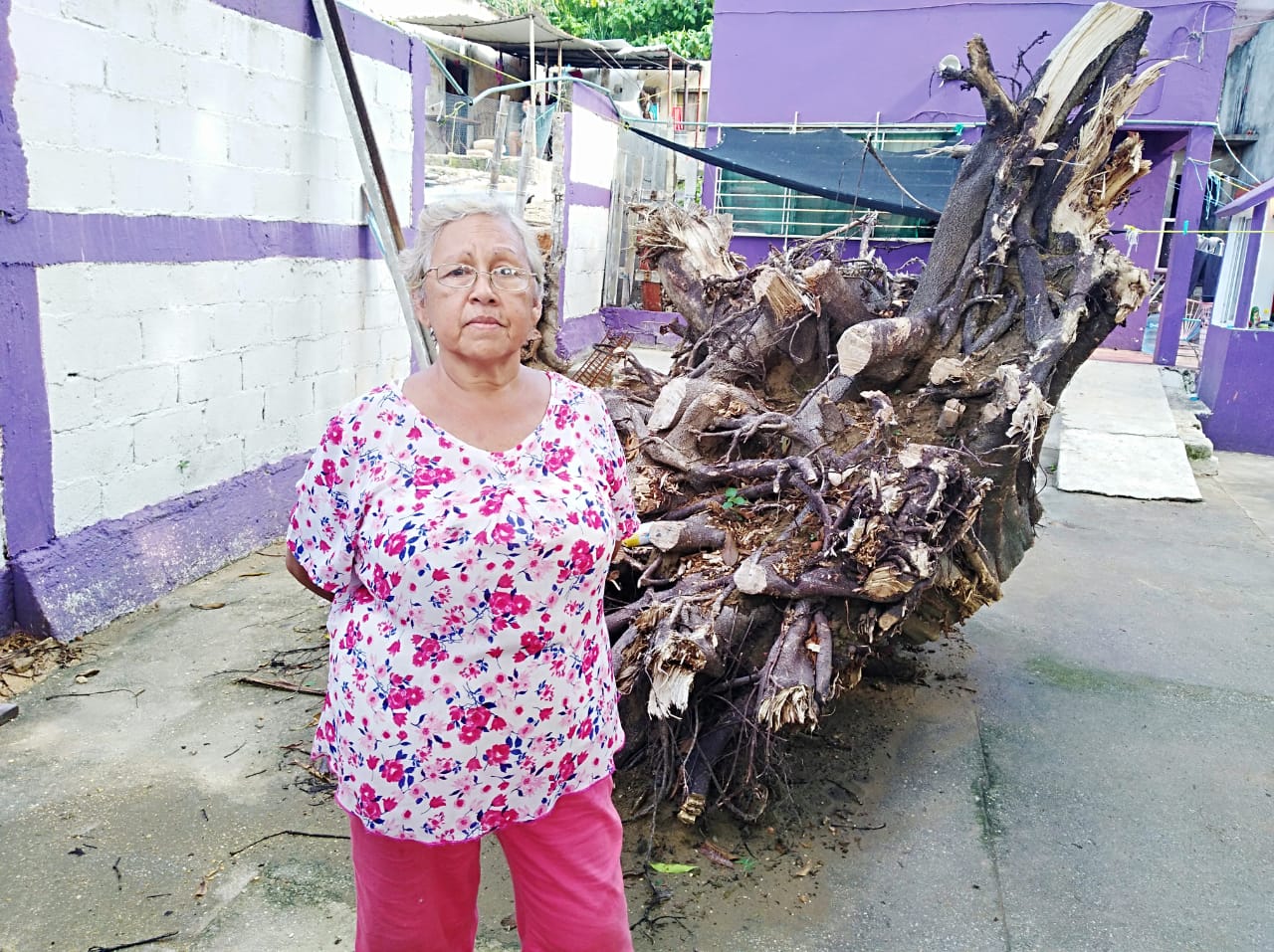 “Fue como el mediodía, en la tardecita. Escuchamos el viento que volaba las hojas, sentimos que se cimbró la casa, porque la raíz del árbol arrancado estaba debajo de la casa”, describió la señora Beatriz Nava Ramírez, vecina de la avenida Flores Magón.