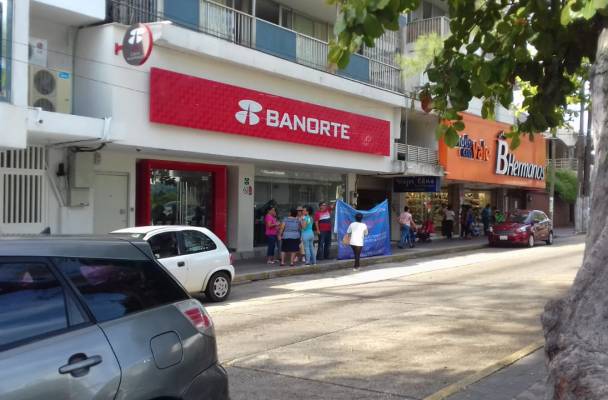 Esta mañana un grupo de habitantes de la colonia 24 de Octubre de Coatzacoalcos se manifestaron afuera de la sucursal bancaria Banorte ubicada en la avenida Zaragoza debido a que les están descontando un crédito de vivienda que resultó dañada por los pasados sismos de septiembre.