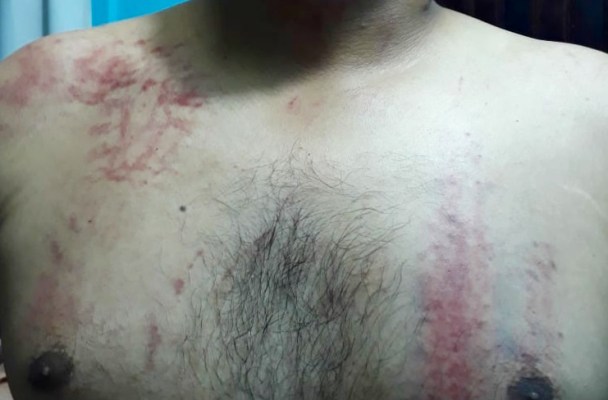 En la clínica del DIF no pudieron evaluarlo porque no contaban con médico legista, así que regresó a la comandancia, recibió apoyo por parte de Protección Civil y tras pagar 600 pesos de “multa administrativa”, a las 10 de la noche lo dejaron ir. Entonces regresó al DIF, en donde un médico lo atendió y registró lo siguiente: “Poligolpeado en cabeza, tronco y extremidades y marcas con cortaduras superficiales en espalda con machete por policías. Sin estado de ebriedad. Probable fisura de mandíbula”.