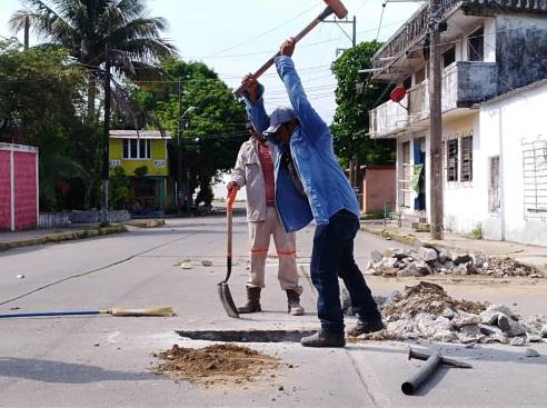Ayuntamiento repara los socavones de la CAEV Coatzacoalcos