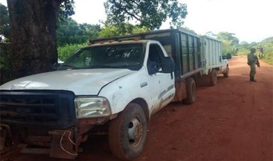 Los elementos de la Policía Estatal, al realizar un recorrido de vigilancia sobre el camino de terracería que conduce de la localidad de Almagres a la localidad de San Antonio, en el municipio de Sayula de Alemán, aseguraron dos camionetas de redilas abandonadas, en las cuales se localizó un total de cuatro mil 899 litros 738 mililitros de hidrocarburo contenido en seis bidones.