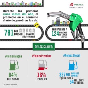 A la fecha, lo que paga la empresa mensualmente para comprar únicamente gasolinas, estimado en mil 500 millones de dólares, supera el costo de la nómina de la firma, incluidos los servicios generales y la nómina de jubilados, que suma 15 mil 808 millones de pesos.