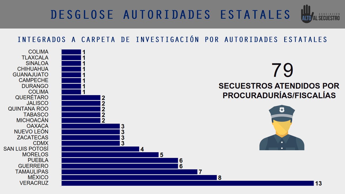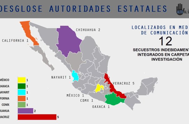 En contraste, Baja California Sur, Chiapas, Coahuila, Hidalgo, Sonora y Yucatán reportaron cero secuestros el mes pasado.
