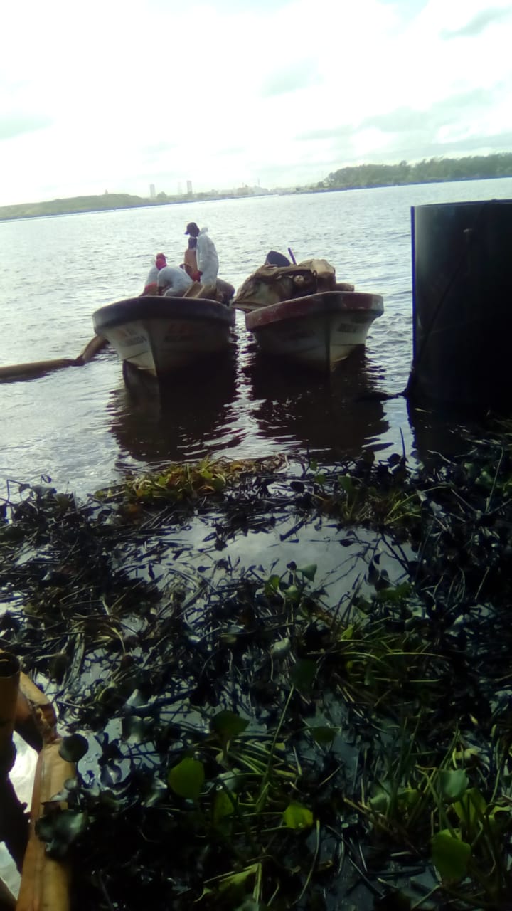 Personal especializado de PEMEX colocó de forma preventiva barreras contenedoras alrededor del lirio para su contención y se iniciaron las actividades de recolección de lirio impregnado.
